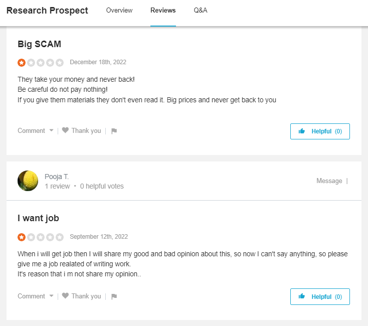 When I'm not sure about something, I visit this website. After checking a few dozen Researchprospect.com Reddit reviews, I realized why the company's reputation seemed dubious. When it comes to independent web platforms, people start telling the truth. Many people have encountered low paper quality and plagiarism. Also, people complain that this company doesn't meet deadlines.
